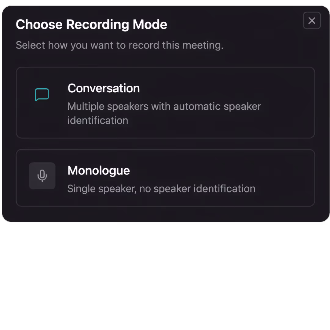 Zeichnen Sie das Gespräch auf oder laden Sie ein externes Transkript hoch und erhalten Sie eine klare KI-Zusammenfassung dessen, was besprochen, entschieden und vereinbart wurde.