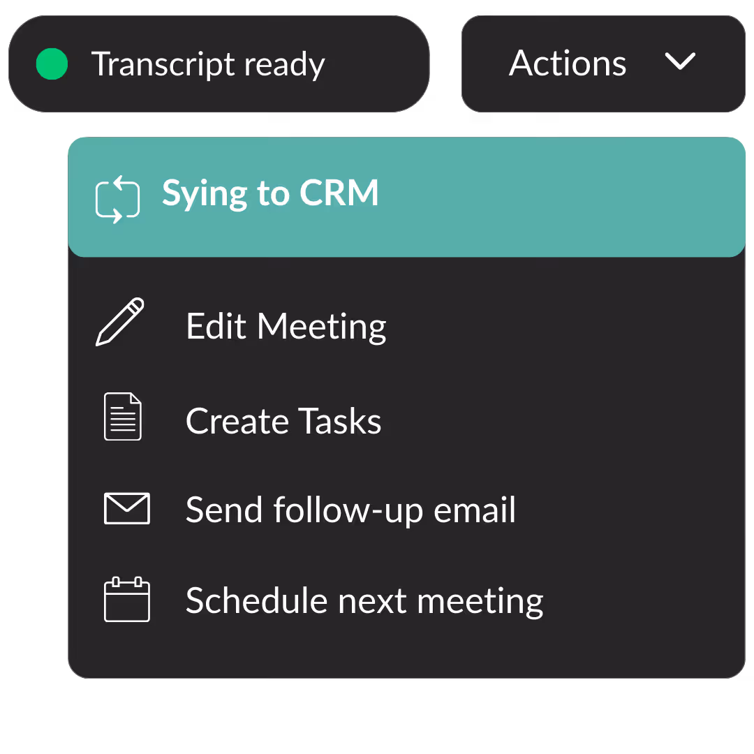 Wichtige Ergebnisse, Notizen und nächste Schritte werden automatisch in Ihr CRM übertragen, damit nach dem Meeting nichts verloren geht.